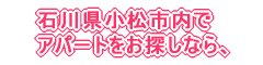 | アルモニー | 小松市松任町 | 無し | 全室角部屋2DK、市役所等近く生活に便利な場所 |